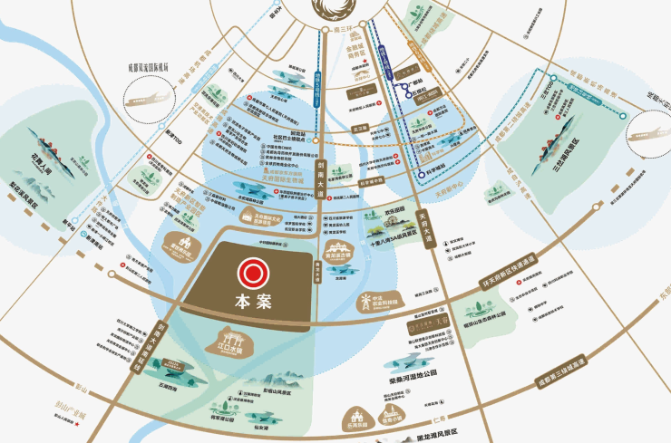 维立体交通汇集“水陆空”三,据城南进展主轴七通八达:占,天府主城无缝毗连,道横向接驳剑南大道环天府新区急速通,条都市主干道天府大道等8。天府国际机场双流机场、,场加持双机,际进展同频国;龙溪船埠千年黄,上互联网首要节“两江一湖”水点