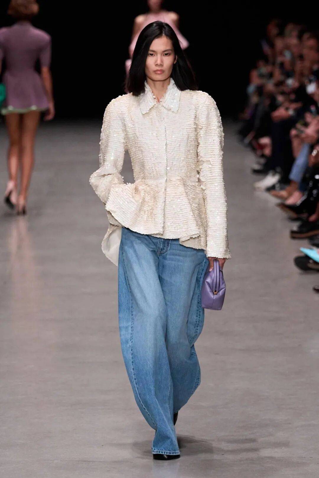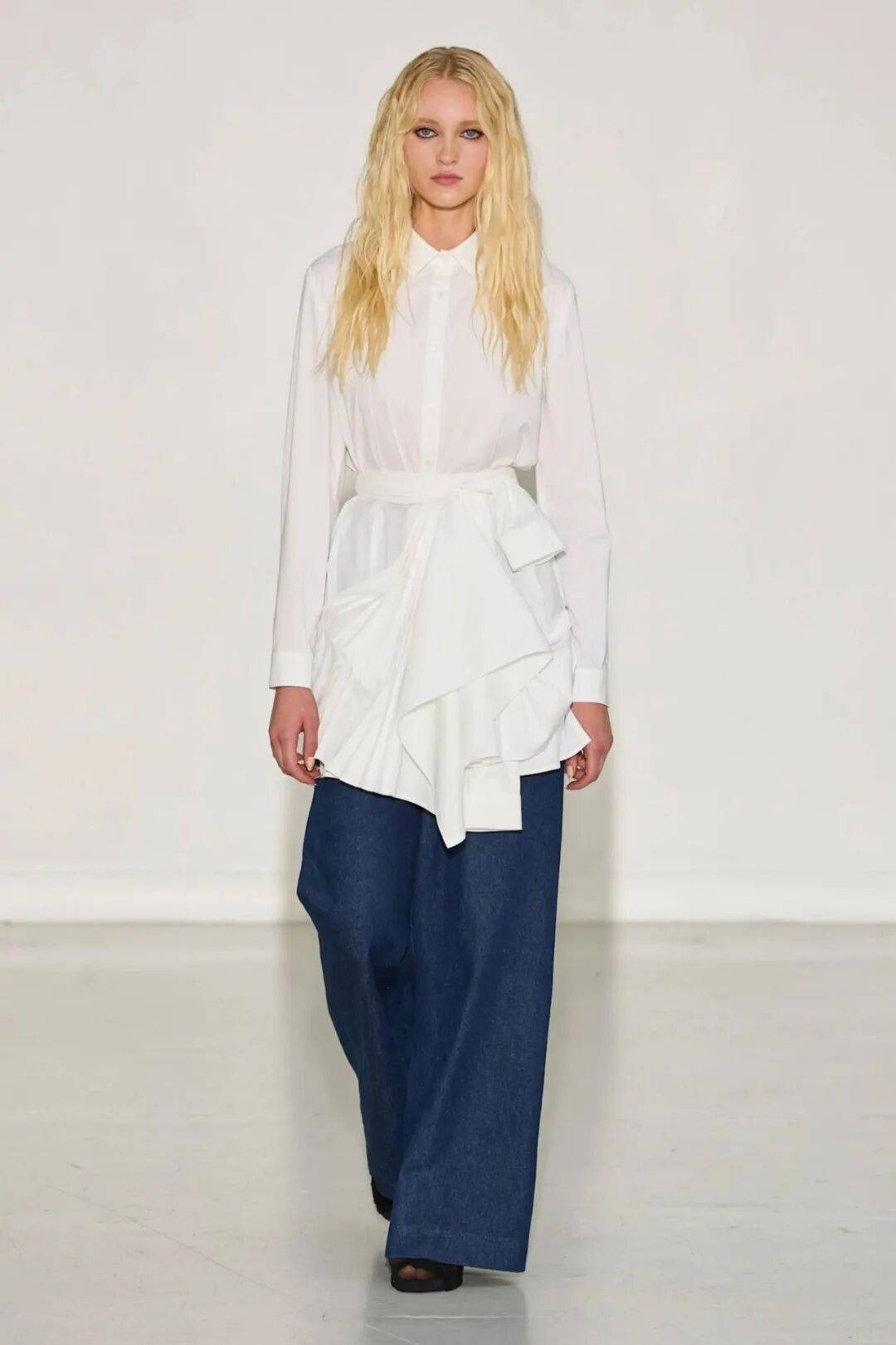 系列中春夏,袖子、镂空细节、荷叶边和错误称打算长款衬衫打破了守旧的比例:蓬松的,垂至地面有时乃至。与宽松牛仔裤搭配等品牌将这类衬衫,找到了圆满的平均正在轻飘与挺括之间亚星式:宽松牛仔裤行动根蒂这恰是本季的症结搭配公亚星造型的点睛之笔长款衬衫行动。