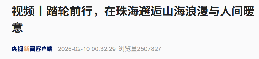 视总台报道主题播送电,10日2月,春体验勾当正在珠海完竣举办“港澳乡亲珠海过大年”新,首批“特邀体验官”十余名港澳同胞举动,特点景区等多元业态切身感触珠海表地,粤港澳人文交融的新春体验开启一场“山海城”风韵与。