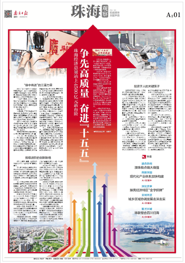 报》报道《南方日,9日2月,两会时代”珠海进入“。十五五”新程开启之际正在“十四五”收官与“,前后近十年的回头与远看本年珠海两会是一次超过。新一轮科技革命和家产革新机缘跟着珠海以空前未有的力度抢抓,入空前鳞集灵活期都邑科技更始进,、赶超超过的攻坚冲破期珠海正步入新的抢先进位。