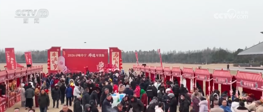 10日2月,年货大集繁荣开市江苏盐城阜宁县。采购与习俗体验区“一站式”年货,民搭客前来打卡吸引了稠密市。