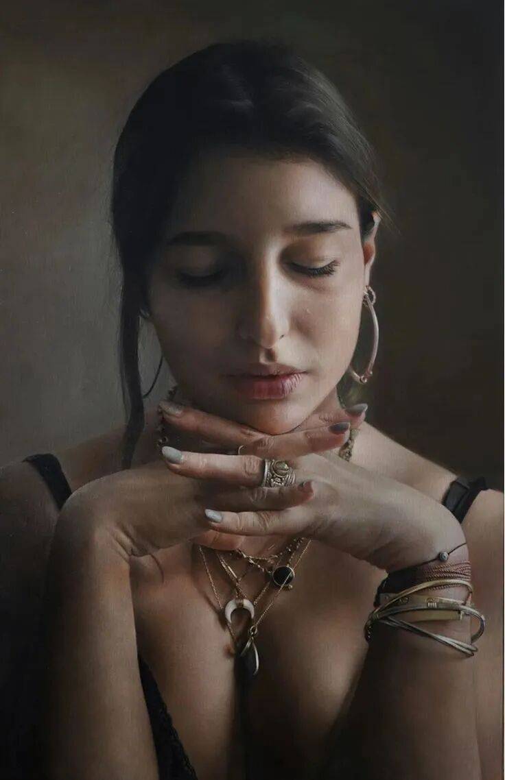 修复师的专业练习安妮经受过图片,层层叠加的紧密技法这让她正在绘画中采用,物的亲密性质逐渐揭示人。中摄取灵感她从照片,赤裸真正描写寻求对实际的,肖像画的模特遴选同时根植于古代。