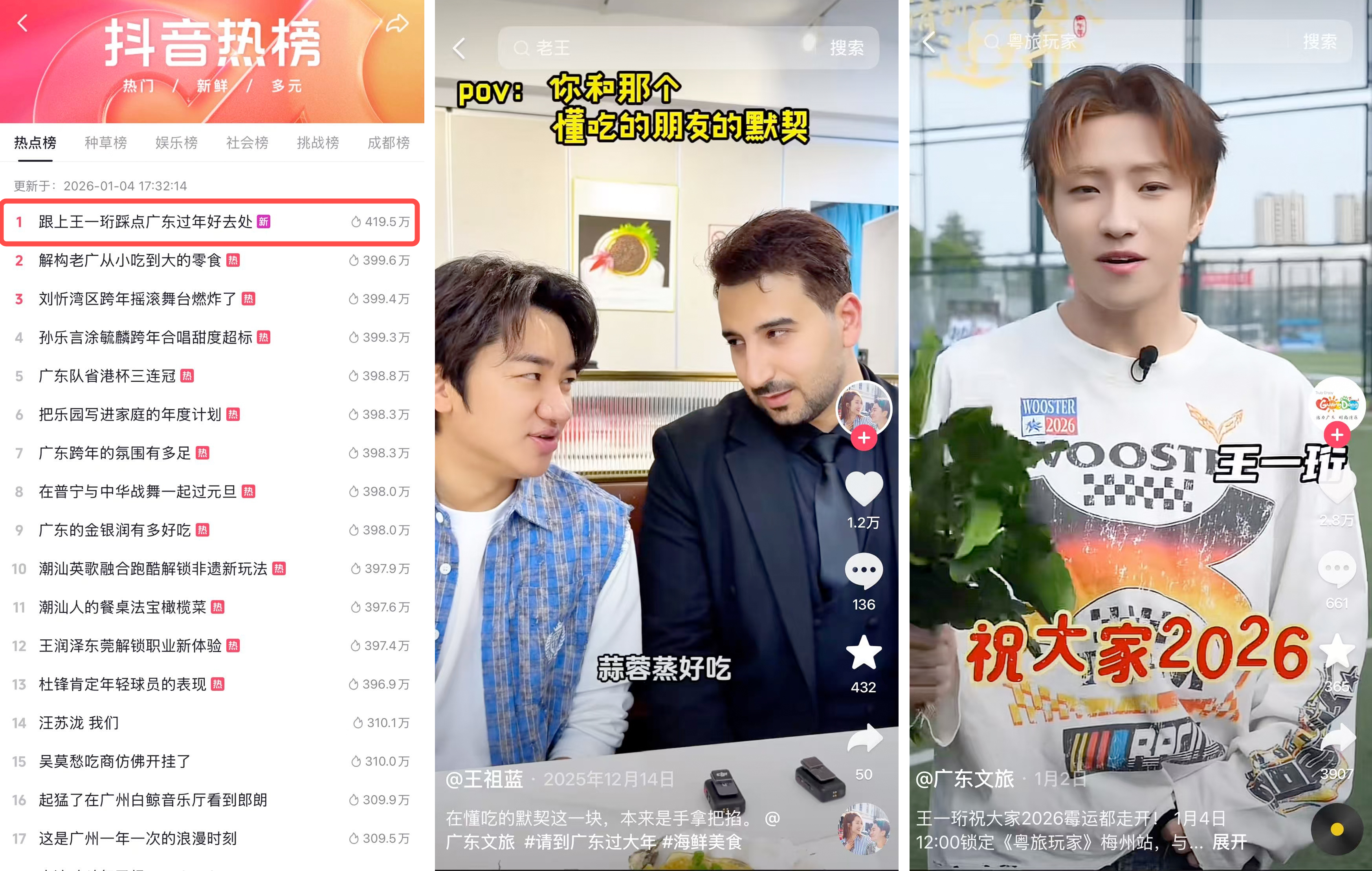 间期,台内连接破圈明星话题正在平,光与信赖背书酿成高密度曝。掐登上世界文娱榜TOP4#王祖蓝懂吃这块手拿把,的吃播体验以轻松可靠,星吃广东”的美食心智迅疾创设起“随着明;世界种草榜TOP4、同城榜TOP1#跟上王一珩踩点广东过年好去向冲上,节出行计议节点掷中年青用户春。表此,味”的合系实质盘绕“硬核年,断发酵也不,春节正在广东 线#世界最硬核的,续上升热度持,被屡次加强、连接放大让广东春节的奇异气质。