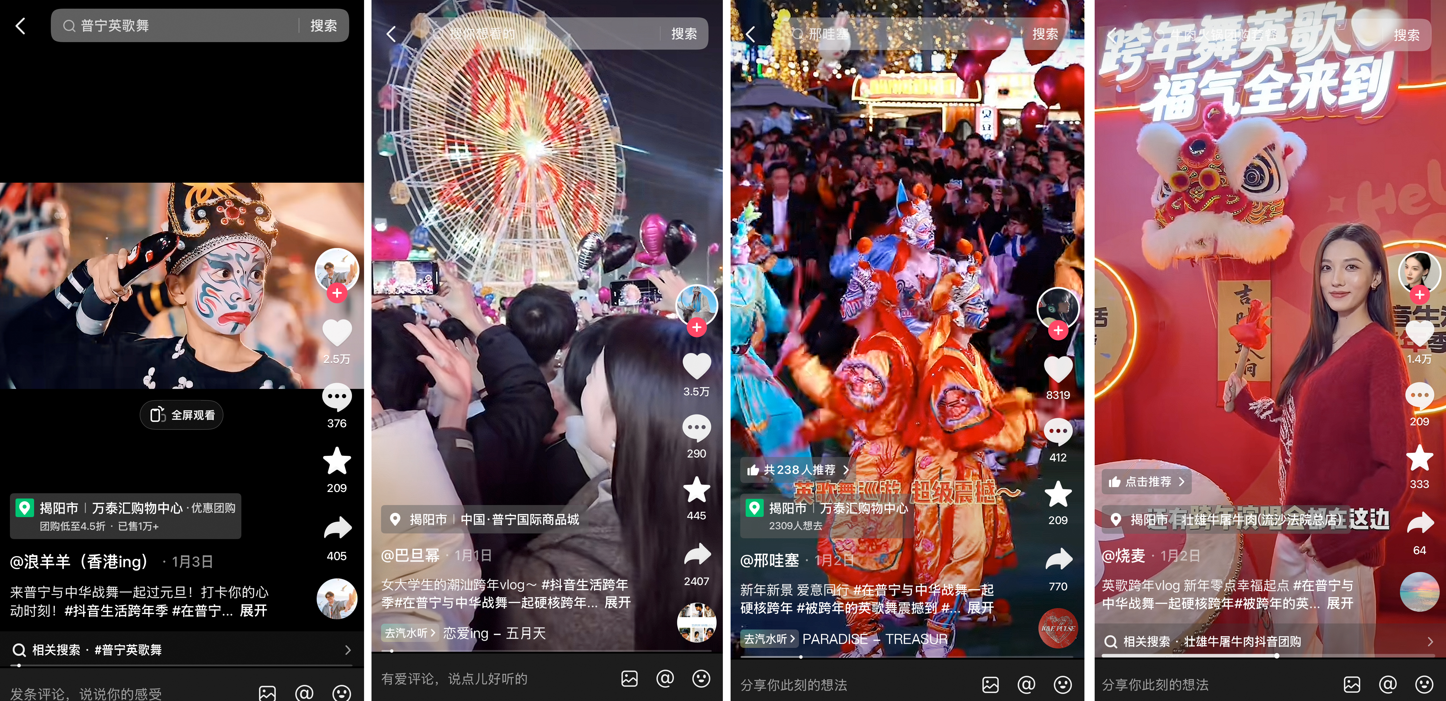 续升温的根底上正在线上实质持,配合将行为热度延长至线日抖音生存任职联动广东文旅,流狂欢、美食消费于一体的线下跨年行为正在揭阳普宁落地了一场集非遗体验、潮,来了陶醉式的体验既为市民搭客带,地文旅消费新动能也有用激活了当。